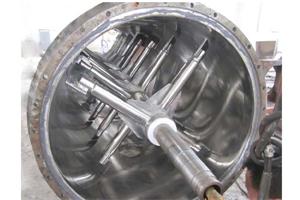 真空耙式干燥機機身中間為圓柱形,器身內(nèi)外分為三層,中間夾套加熱介質(zhì)可以是導熱油循環(huán)(壓力<0.3Mpa表壓)或蒸汽(壓力<0.3Mpa表壓),外層用超細玻璃棉,保溫效果很好,耗能很少,內(nèi)層投放物料,特別適用于有被氧化危險的物料和熱敏性物料的干燥,在干燥過程中不破壞晶體狀的物料,嚴格金屬離子的物料以及要求排出揮發(fā)物(或有毒物質(zhì))須回收(或有毒性)的物料,則更能顯示了它的優(yōu)越性。