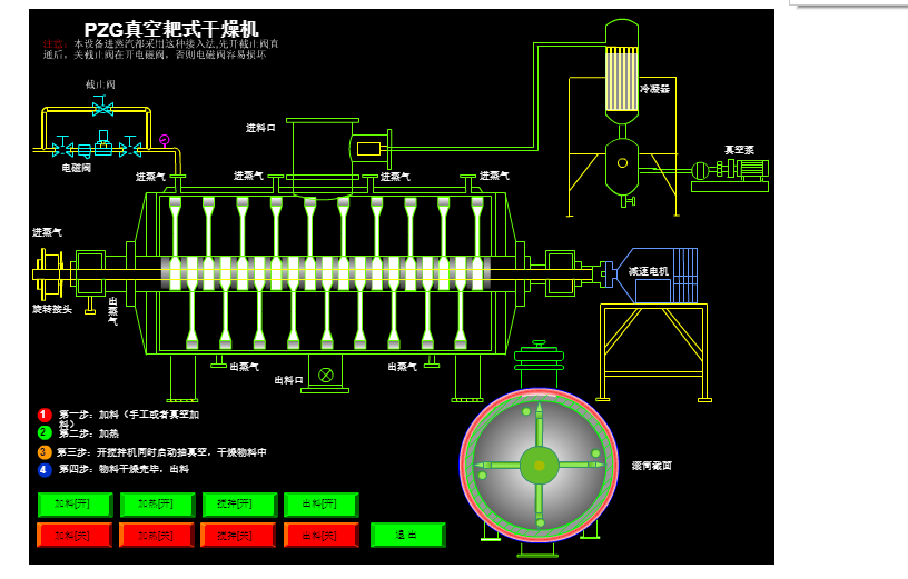 真空耙式干燥機操作簡單,進出物料方便,大幅度減輕了工人勞動強度,同時也減少了物料在干燥過程中受到的環(huán)境污染,提高了產(chǎn)品質(zhì)量,符合藥品管理規(guī)范“GMP”的要求。